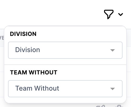 Use the dropdown menu to select either a division or a “Team Without” option.